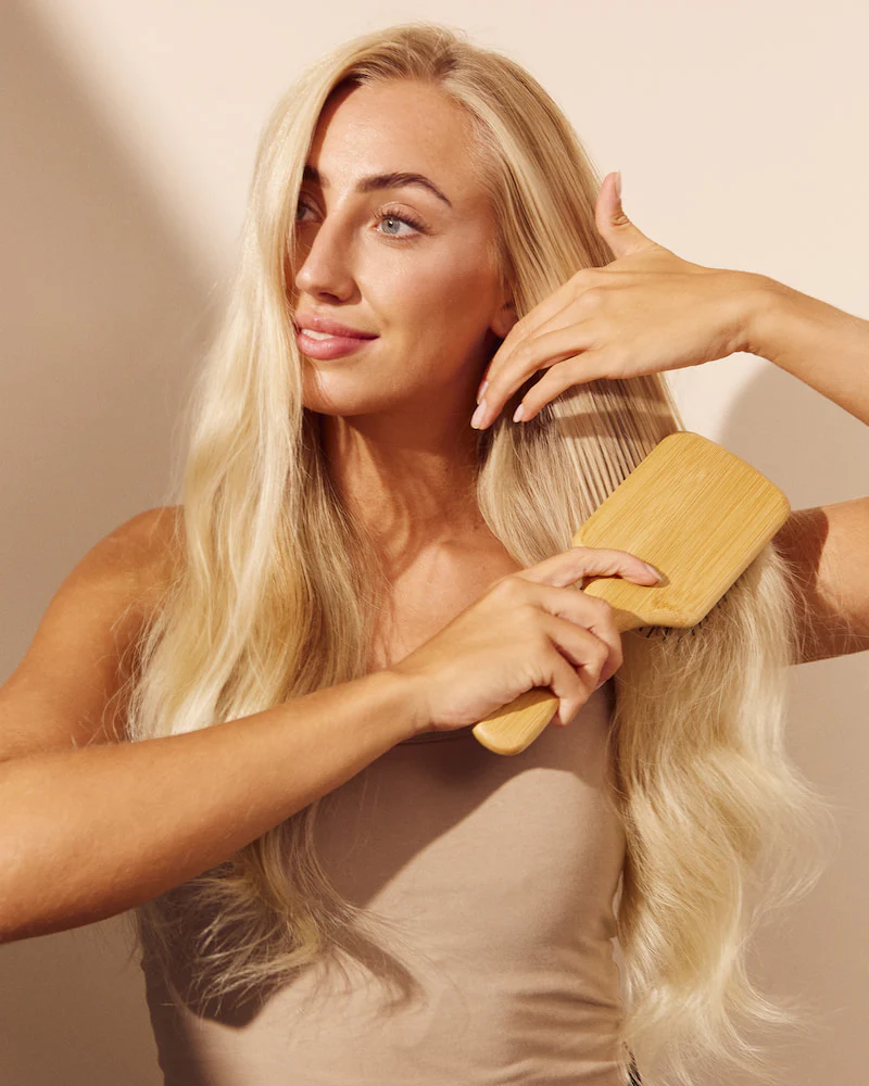 With a broad flat base, our Bamboo Paddle Brush is ideal for long and thick hair (though it works for all hair types). The paddle hair brush is designed for daily detangling, smoothing, and de-frizzing, and can also be used to add volume and fullness to hair while drying for a salon-worthy blowout.