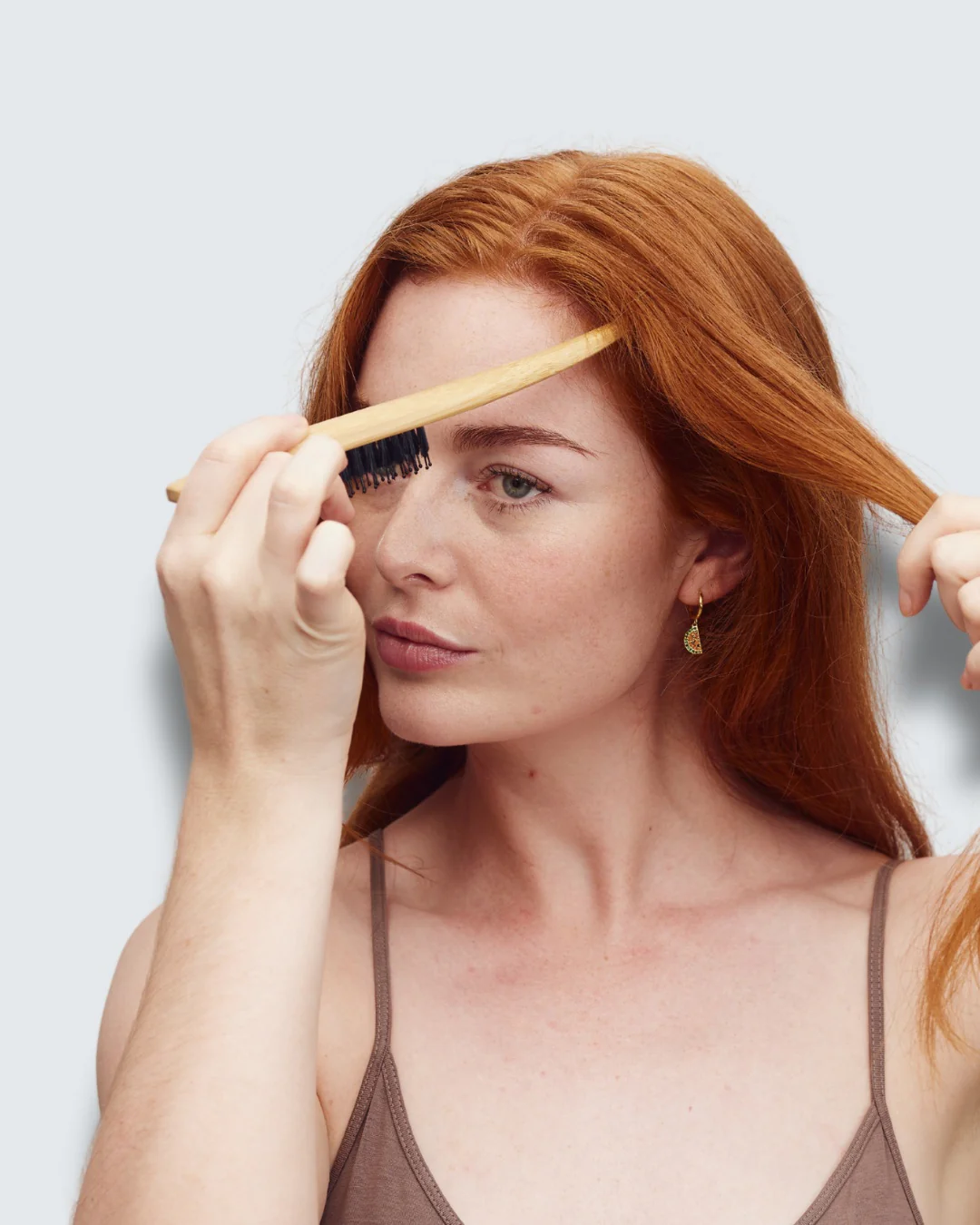 Teasing brush with vegan boar-like nylon bristles for gentle backcombing and precision styling.