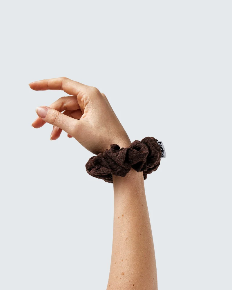 Cute and comfortable hair scrunchies made of 100% recycled cotton.