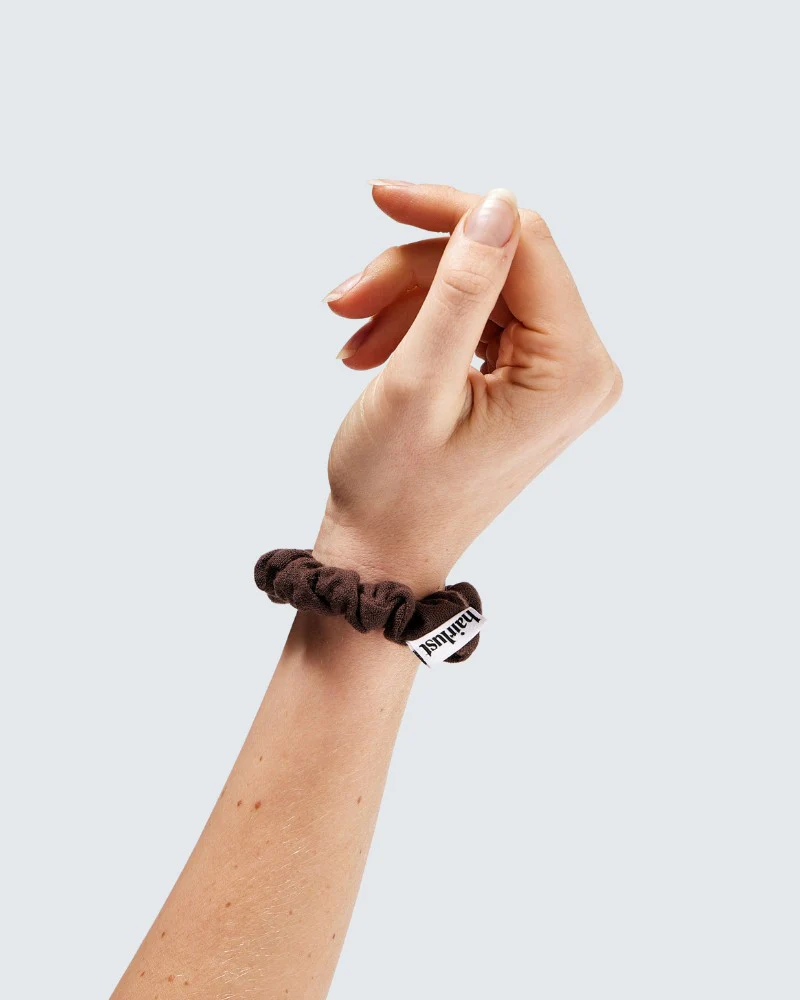 Looking for a subtle, everyday essential? The Cotton Scrunchies, Small, offer a slim design for effortless styling. This 5-pack of skinny scrunchies is made from 100% recycled cotton and comes in rich coffee browns and soft beige tones. These mini scrunchies offer a lightweight feel and a secure hold, making them perfect for delicate hairstyles, braids, or when you want to add a subtle accent. Our small scrunchies are gentle on your hair while being kind to the environment—a stylish and sustainable choice for any day.
