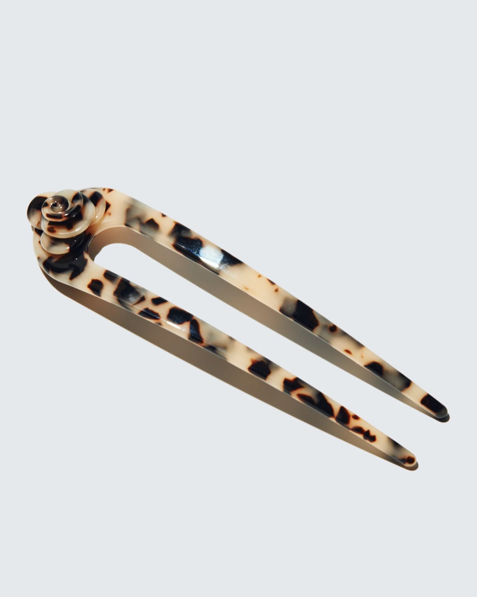 Timeless flower hair pin for easy and elegant French twist hairstyles.