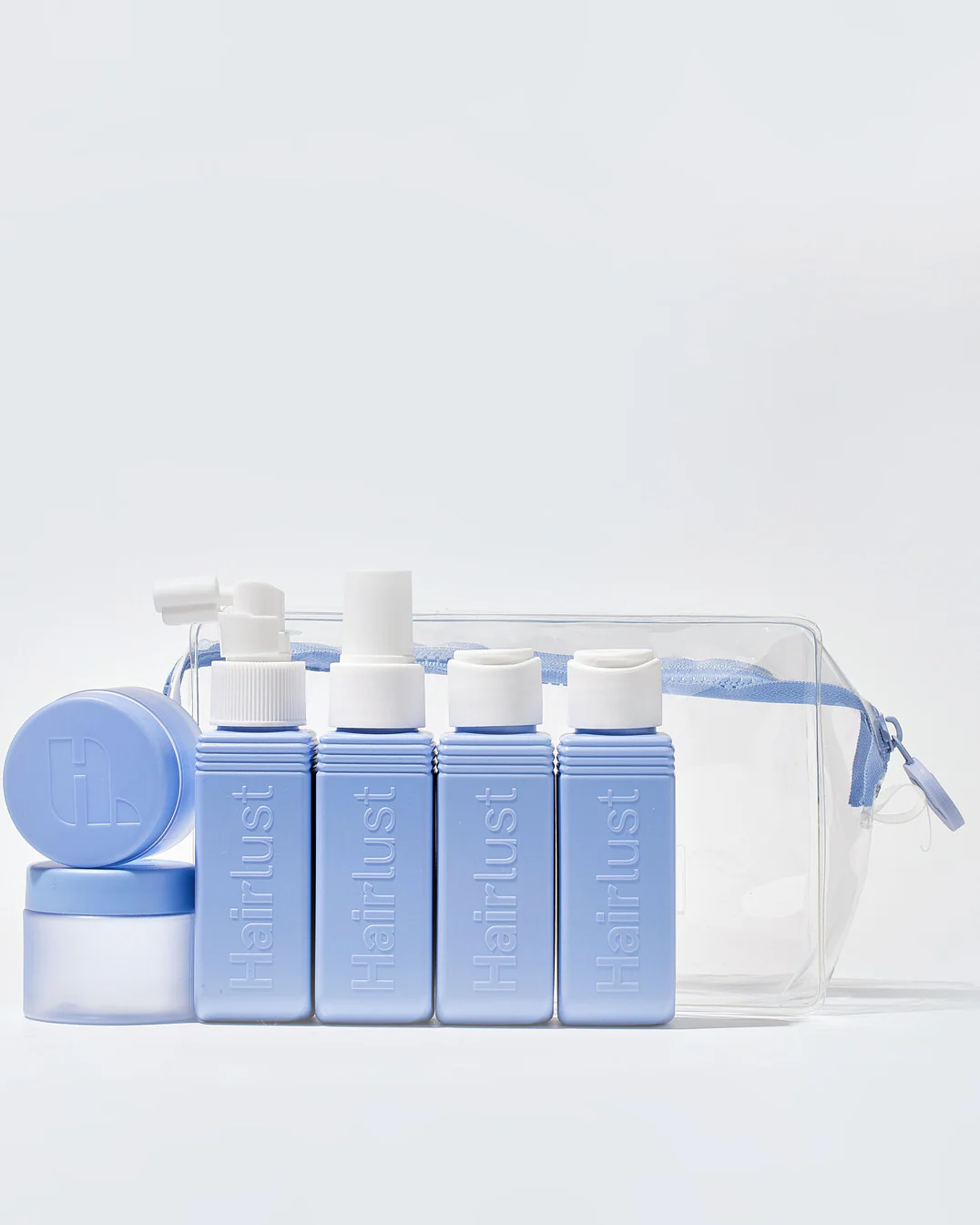 Set of small travel-size containers for bringing your hair and skin care essentials on the go.