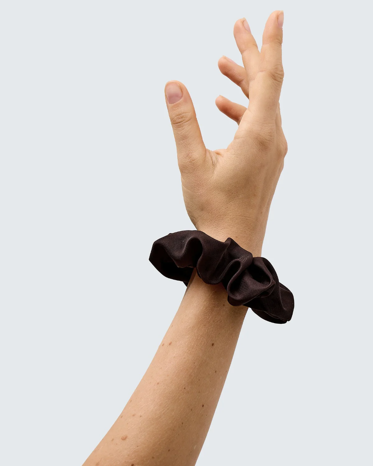 Silky smooth satin scrunchies made of 100% recycled polyester.